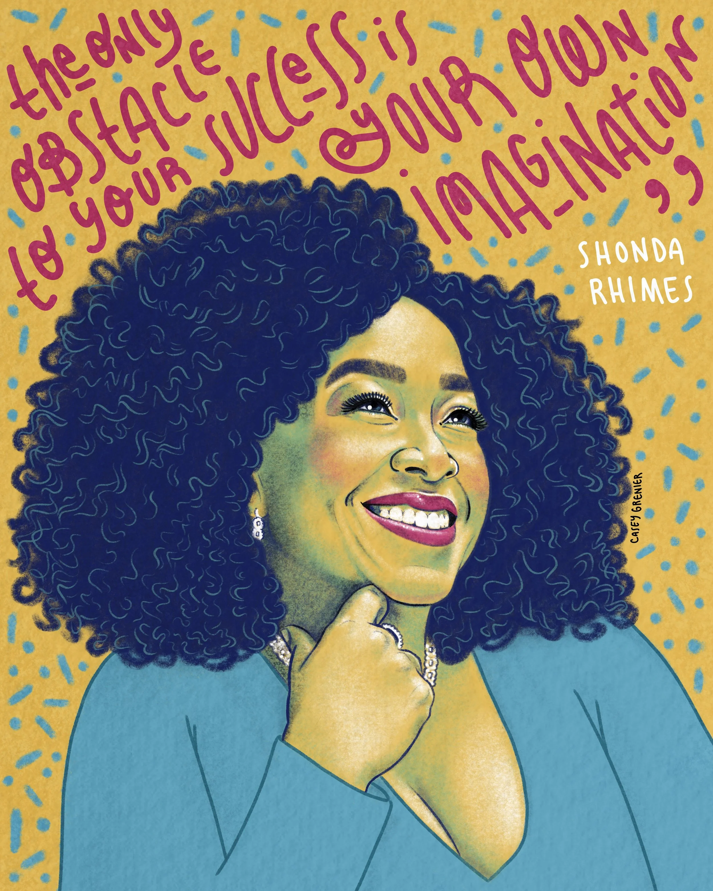 Shonda Rhimes is a constant inspiration for my creativity. This is a quote from her Year of Yes book, which I've listened to over and over: āthe only obstacle to your success is your own imagination.ā Itās a great reminder to get out of my own way, to not put boundaries around my creative work.